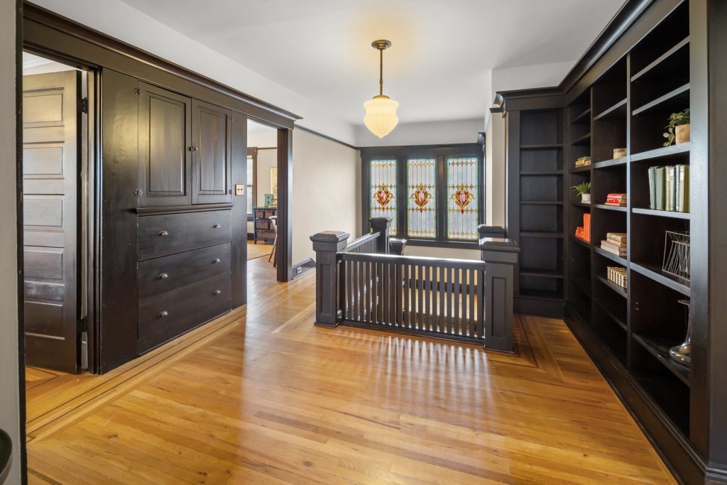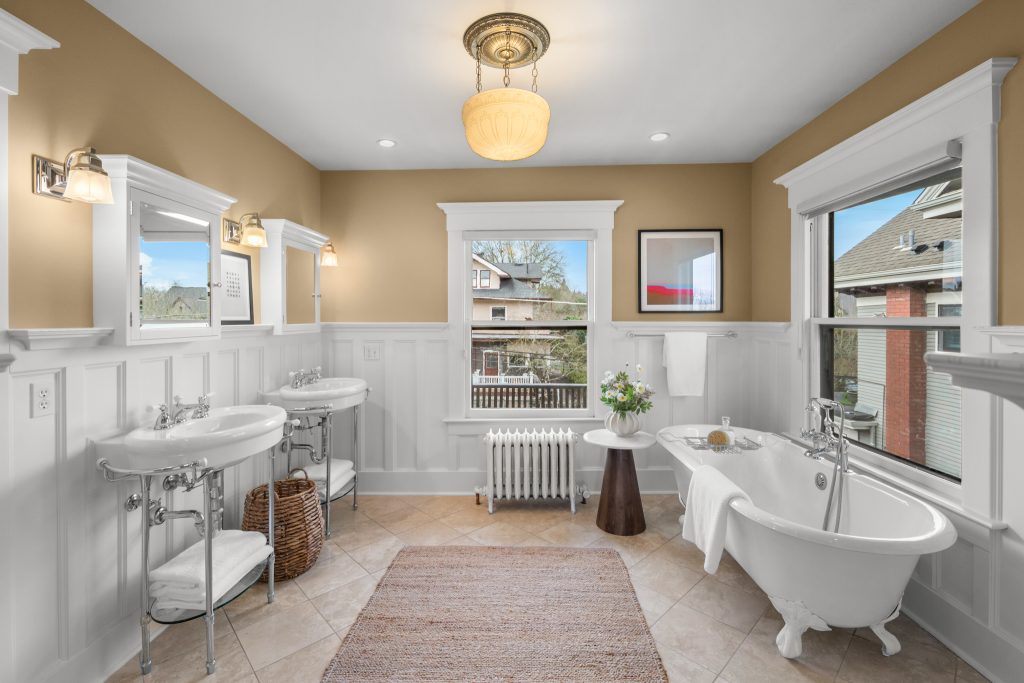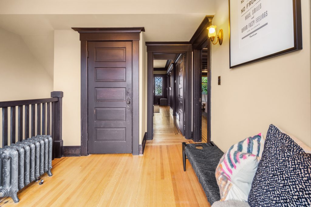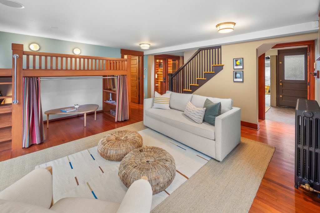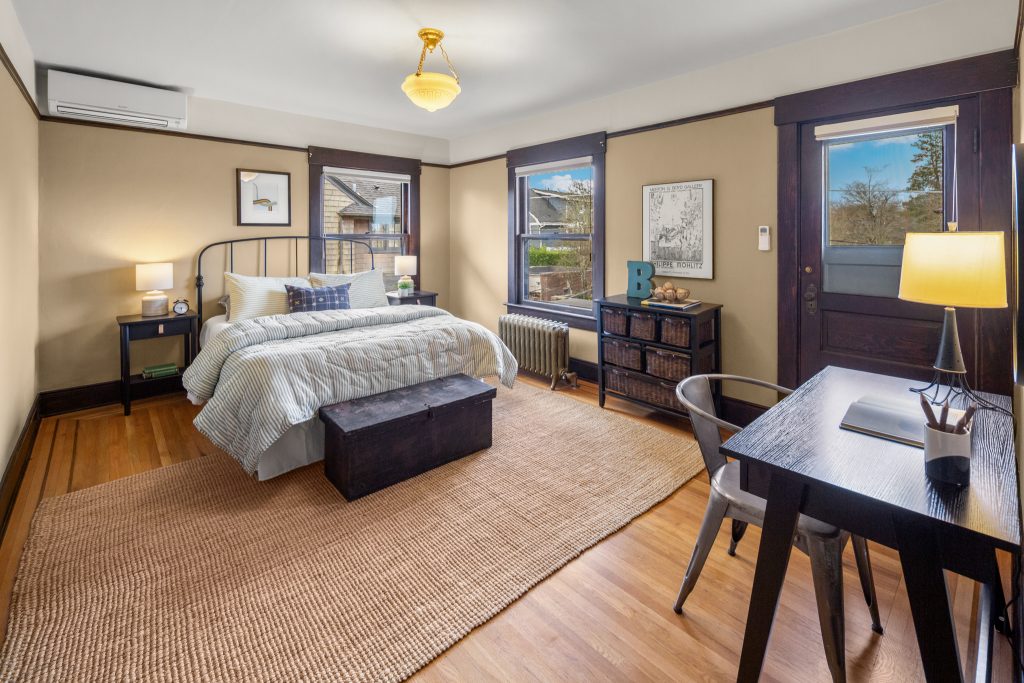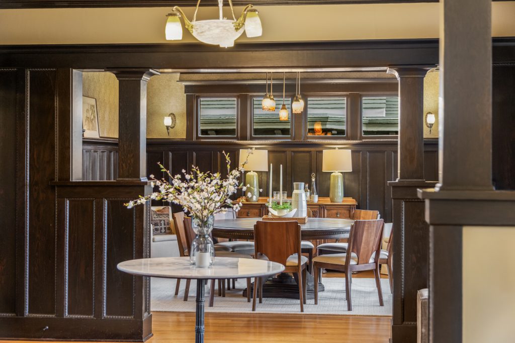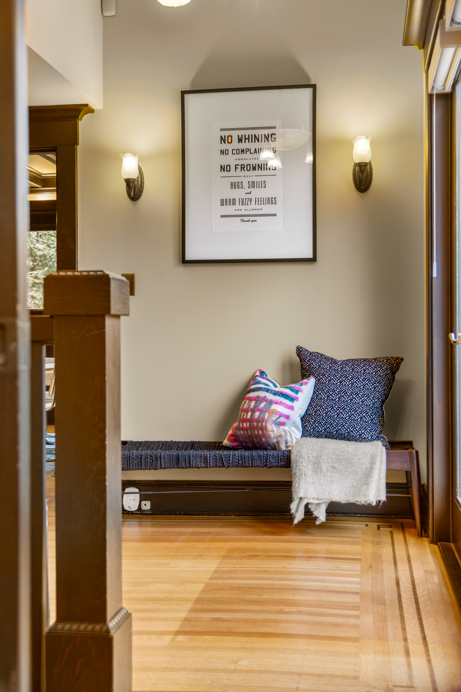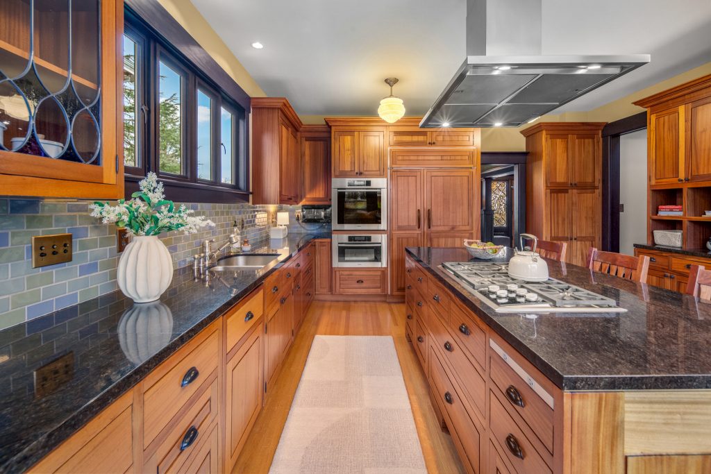 A sultry Foursquare Craftsman of rare scale, sophisticated in style yet genuinely inviting. Grand rooms feel warm and livable, with thoughtful updates seamlessly integrated into rich original woodwork so elegance never comes at the expense of comfort. A stately, storybook front porch sets the tone for morning coffee, evening libations, and effortless neighborly connection. Designed with Prairie-style influence and perfectly scaled living areas. The heart of the home is the spacious updated kitchen flooded with natural light, with vistas of the landscaped yard and living roof on the rebuilt 2 car garage. Wonderful flow and features, throughout, create a home for day-to-day as well as special occasions. Space for all in upper two levels featuring views that stretch across Lake Washington, the Cascade Mountains, and the Bellevue skyline. Expansive primary with view terrace spanning the front of the home plus five additional generous bedrooms, three plus baths and laundry all above grade. A high-ceilinged lower level with fully opening sliding glass walls to a private courtyard. Play, media and wine room as well as workshop/studio with separate exterior access. Renovated with care in period style, the home honors its Craftsman roots while remaining wonderfully accessible. Admired, improved, and quietly coveted through generations, all just moments from parks, shops, restaurants, and effortless commuting to downtown Seattle and the Eastside.