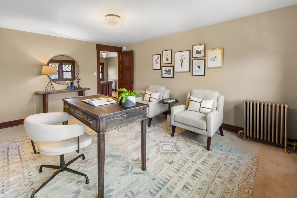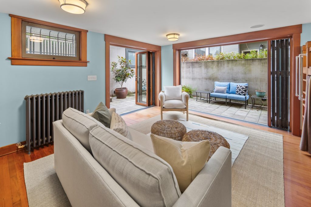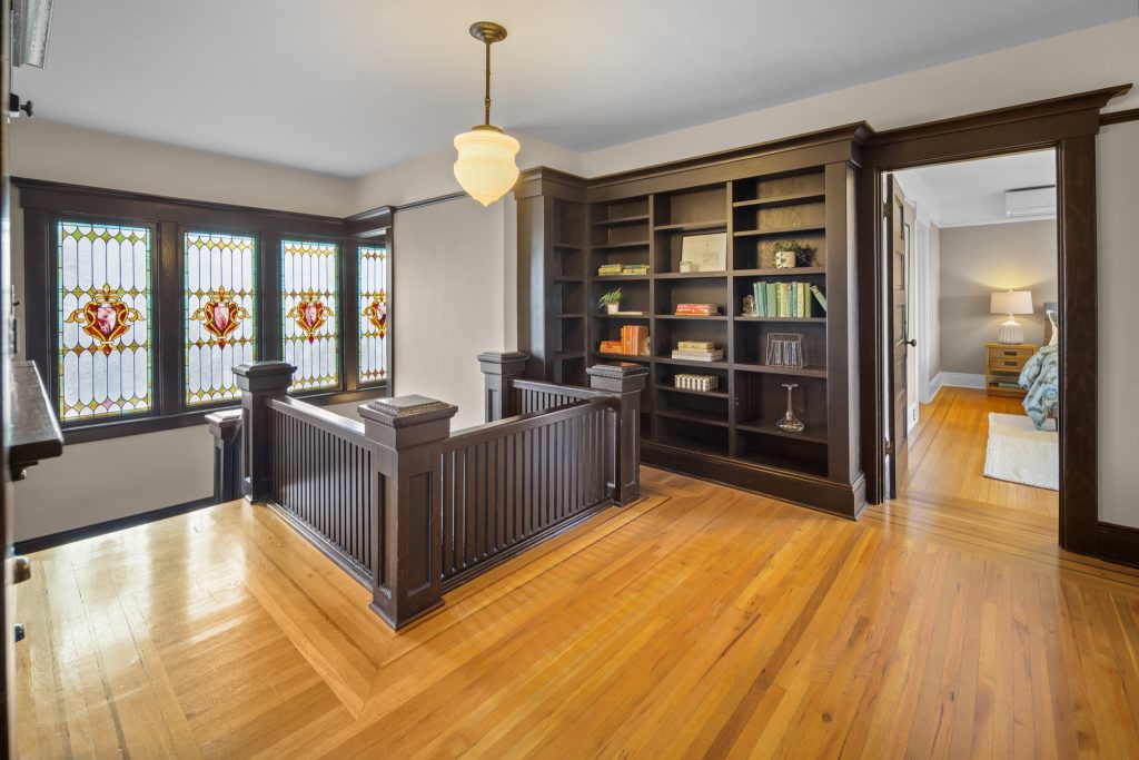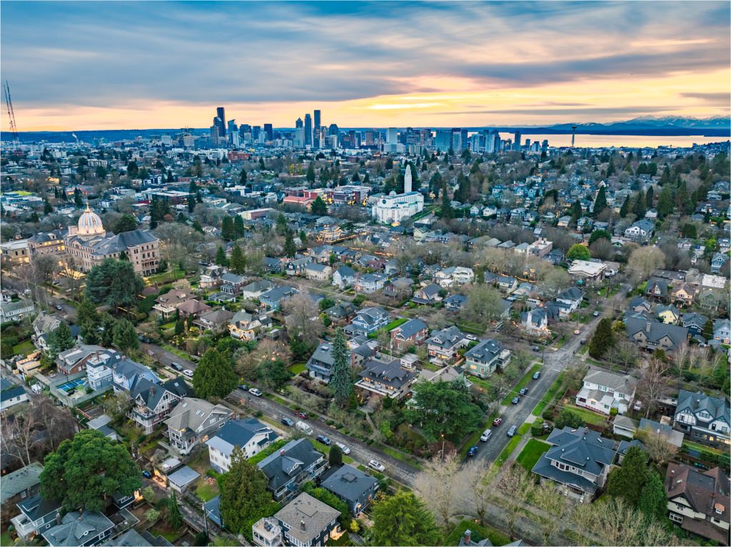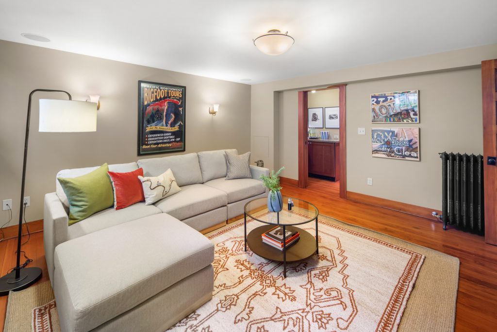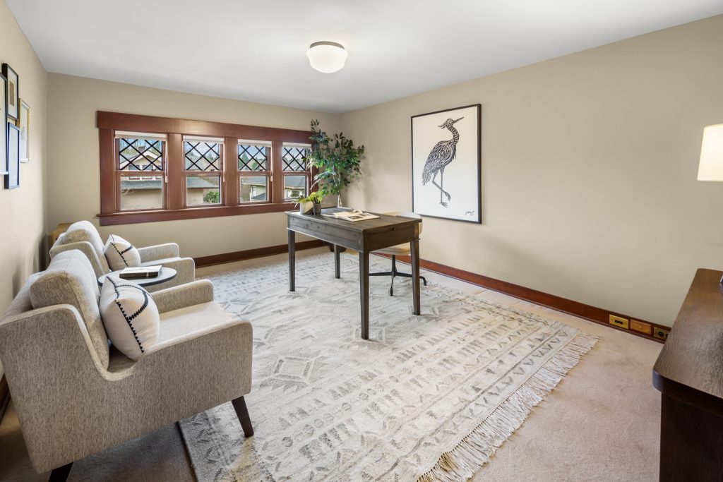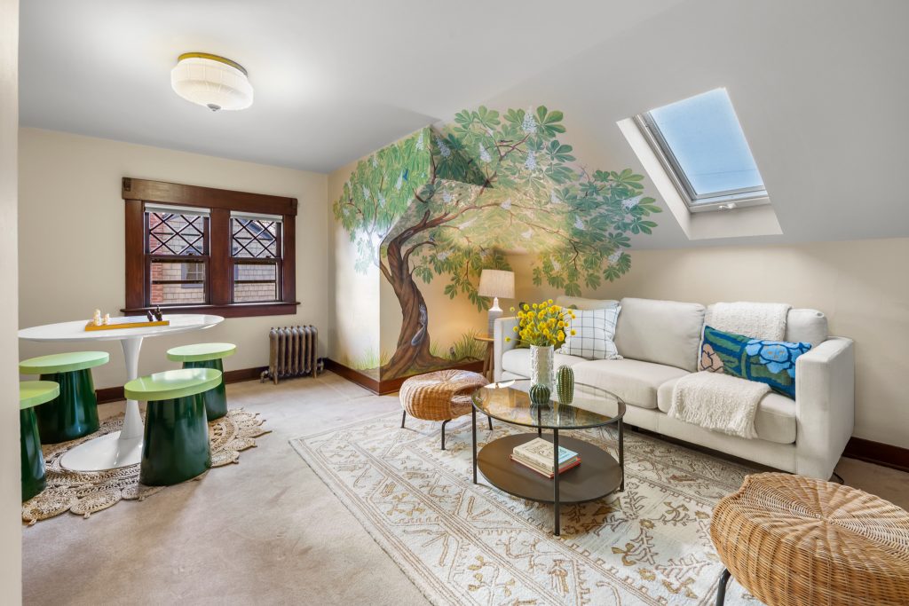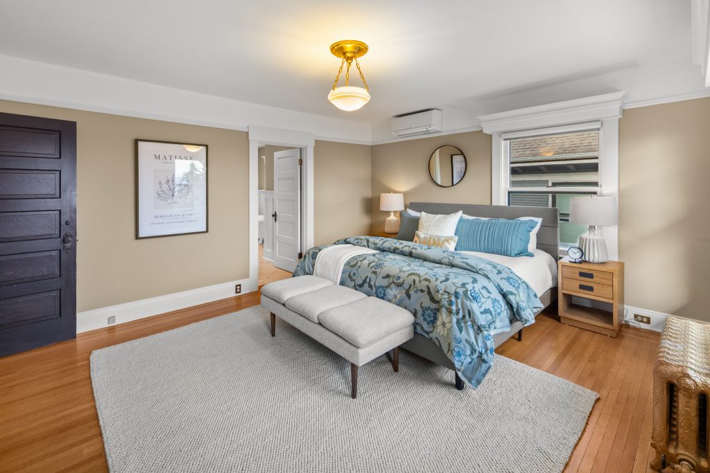 A sultry Foursquare Craftsman of rare scale, sophisticated in style yet genuinely inviting. Grand rooms feel warm and livable, with thoughtful updates seamlessly integrated into rich original woodwork so elegance never comes at the expense of comfort. A stately, storybook front porch sets the tone for morning coffee, evening libations, and effortless neighborly connection. Designed with Prairie-style influence and perfectly scaled living areas. The heart of the home is the spacious updated kitchen flooded with natural light, with vistas of the landscaped yard and living roof on the rebuilt 2 car garage. Wonderful flow and features, throughout, create a home for day-to-day as well as special occasions. Space for all in upper two levels featuring views that stretch across Lake Washington, the Cascade Mountains, and the Bellevue skyline. Expansive primary with view terrace spanning the front of the home plus five additional generous bedrooms, three plus baths and laundry all above grade. A high-ceilinged lower level with fully opening sliding glass walls to a private courtyard. Play, media and wine room as well as workshop/studio with separate exterior access. Renovated with care in period style, the home honors its Craftsman roots while remaining wonderfully accessible. Admired, improved, and quietly coveted through generations, all just moments from parks, shops, restaurants, and effortless commuting to downtown Seattle and the Eastside.